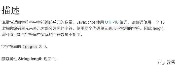 💩可以是一个字符,但是也可以用两个字符来表达,所以你就不能奢望String.length能给到你一个可靠的结果了。这个时候我们回头看一眼MDN上对String.length的描述,你就会发现人家一开始就说了,我不可靠...