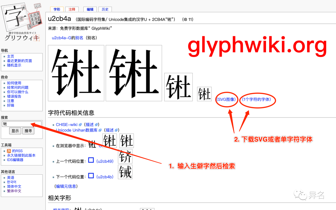 有一个日本的字体信息网站glyphwiki.org,支持检索,甚至可以通过偏旁部首拼凑生僻字,也非常方便