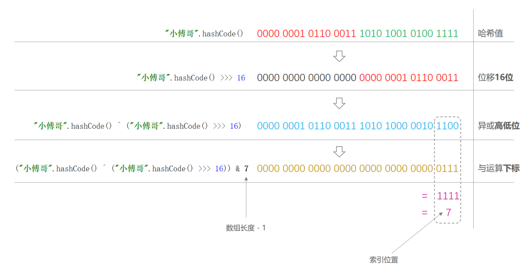 int idx = key.hashCode() & (tab.length - 1); // 计算索引位置