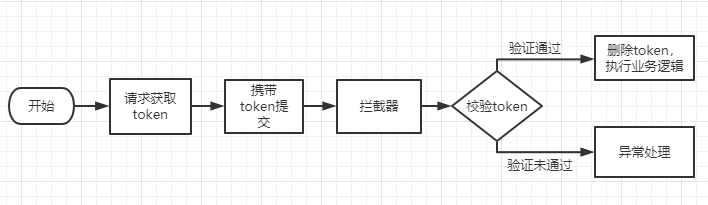 token机制:请求业务接口之前,先请求token接口(会将生成的token放入redis中)获取一个token,然后请求业务接口时,带上token。在进行业务操作之前,我们先获取请求中携带的token,看看在redis中是否有该token,有的话,就删除,删除成功说明token校验通过,并且继续执行业务操作;如果redis中没有该token,说明已经被删除了,也就是已经执行过业务操作了,就不让其再进行业务操作。大致流程如下: