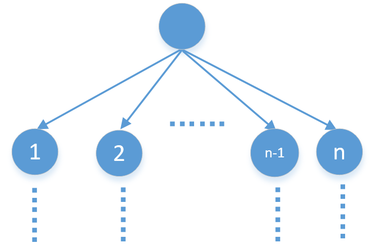 这个递归在熟悉不过了,第2-3行是终止条件,第4行是调用自己。我们就用n等于5的时候来画个图看一下递归究竟是怎么调用的