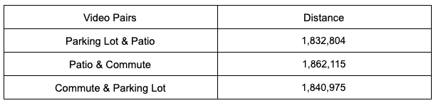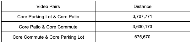 不仅两个视频之间没有明确的排名,而且停车场和露台两个视频似乎是最相似的,这与最初的假设形成了鲜明对比。