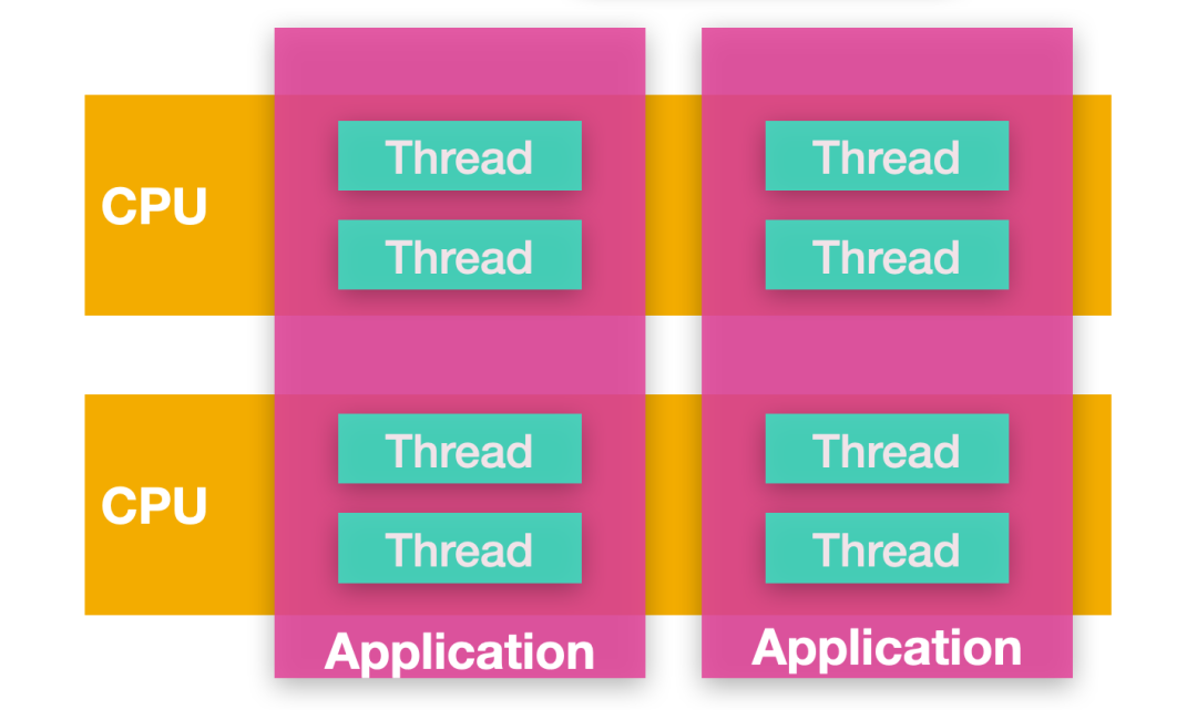 多线程意味着你能够在同一个应用程序中运行多个线程,我们知道,指令是在 CPU 中执行的,多线程应用程序就像是具有多个 CPU 在同时执行应用程序的代码。