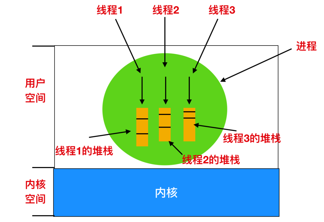 每个线程都有自己的栈空间,这是线程私有的,还有一些其他线程内部的和线程共享的资源,如下所示。