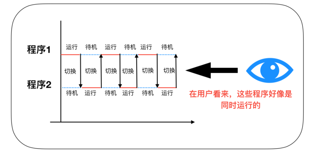 操作系统实现多个程序同时运行解决了单个程序无法做到的问题,主要有下面三点