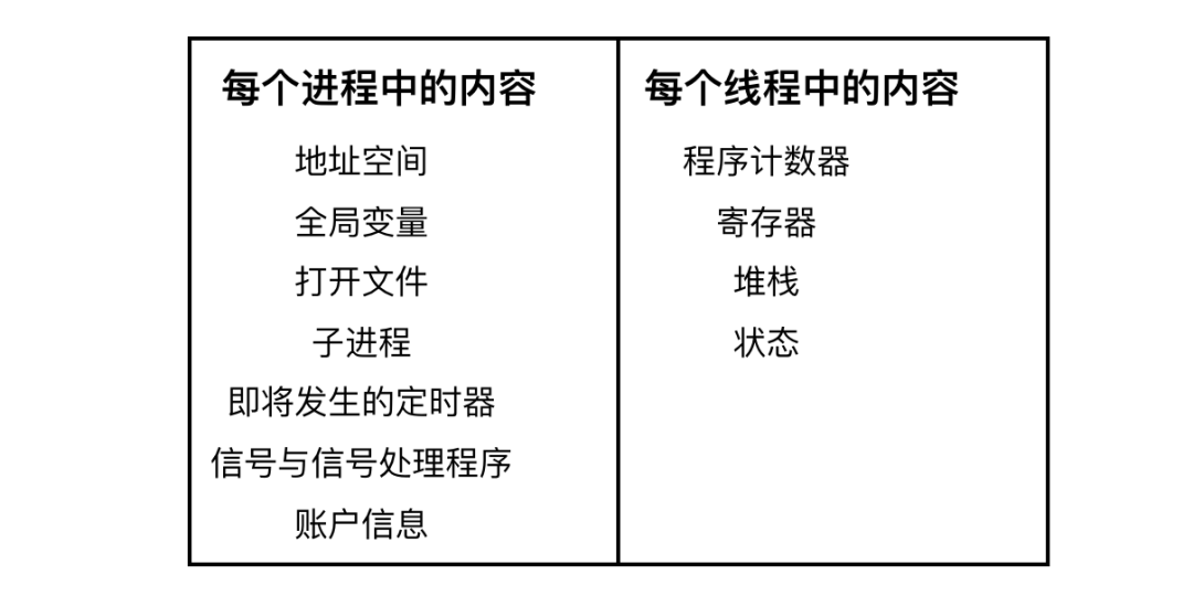 线程会共享进程范围内的资源,例如内存和文件句柄,但是每个线程也有自己私有的内容,比如程序计数器、栈以及局部变量。下面汇总了进程和线程共享资源的区别