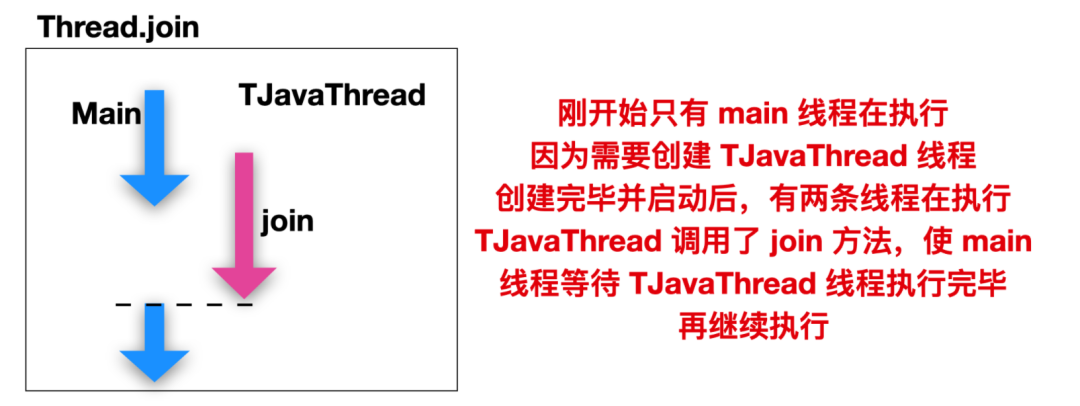 一个线程可以在其他线程上调用 join() 方法,其效果是等待一段时间直到第二个线程结束才正常执行。如果某个线程在另一个线程 t 上调用 t.join() 方法,此线程将被挂起,直到目标线程 t 结束才回复(可以用 t.isAlive() 返回为真假判断)。