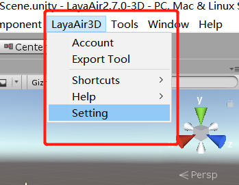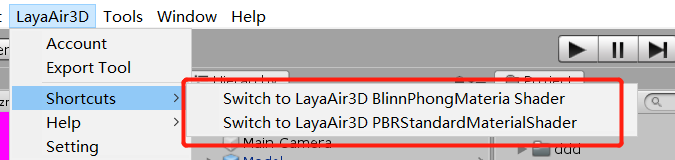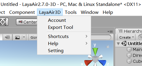 成功导入插件包后,会在菜单栏看到LayaAir3D的菜单列表项,如下图所示。