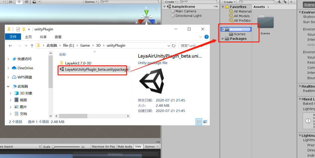 如果想使用已有Unity项目的场景资源和编辑好的场景,建议在Unity空项目里安装好LayaAir引擎的插件,然后再把旧项目的资源目录(也就是Unity项目中的Assets目录)复制到新建的项目里。
