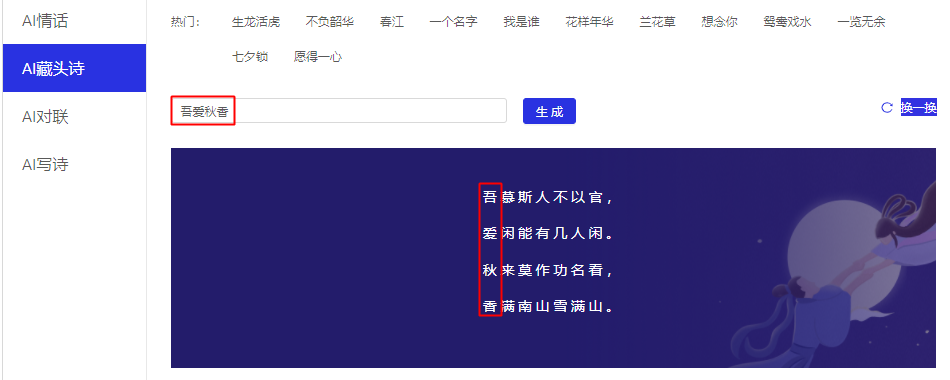 目前演示页限制是七言绝句,如果是需要其它的七言律诗、五言绝句和五言律诗,可以通过代码调用,效果也是妥妥的!