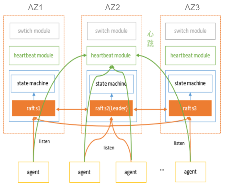爱奇艺自研MysQL HA系统由HA Master和HA Agent两部分组成。三个HA Master组成一个最小集群单元,这个最小集群单元对应MHA的Manager,通过raft协议实现高可用,解决Manager单点和不能重复切换的问题。HA Agent功能和MHA Node功能类似,负责责故障检测、解析和传输 binlog、清理 relay log 以 及负责 MGR 的高可用。