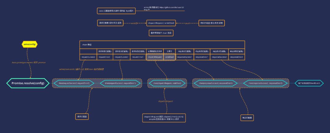 答:实际是调用的Axios.prototype.request方法,最终返回的是promise链式调用,实际请求是在dispatchRequest中派发的。