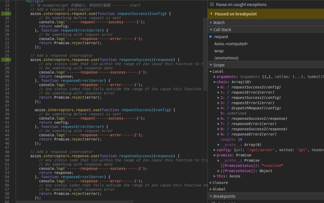 本文就是通过上述的例子axios/sandbox/client.html来调试的。