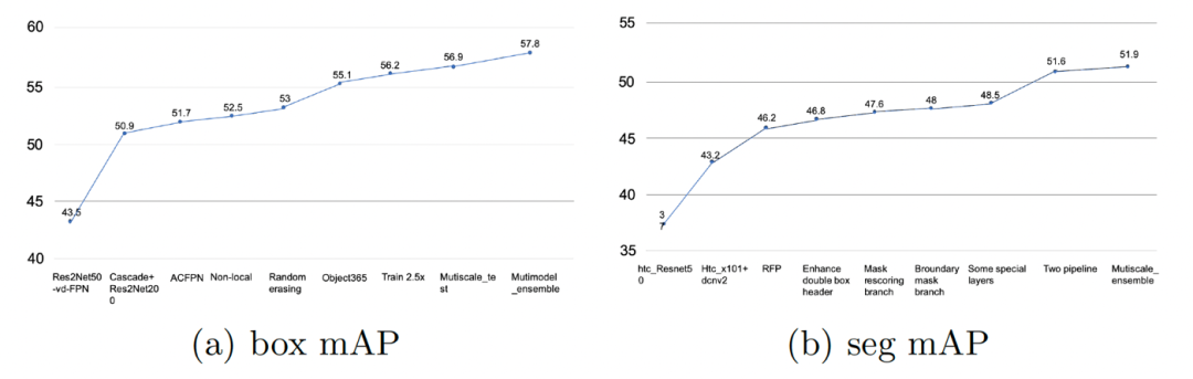比赛中,我们用效果优良的Cascade Mask R-CNN和HTC网络作为基础网络,在这些基础网络上,加入更多改进策略来提升检测效果。