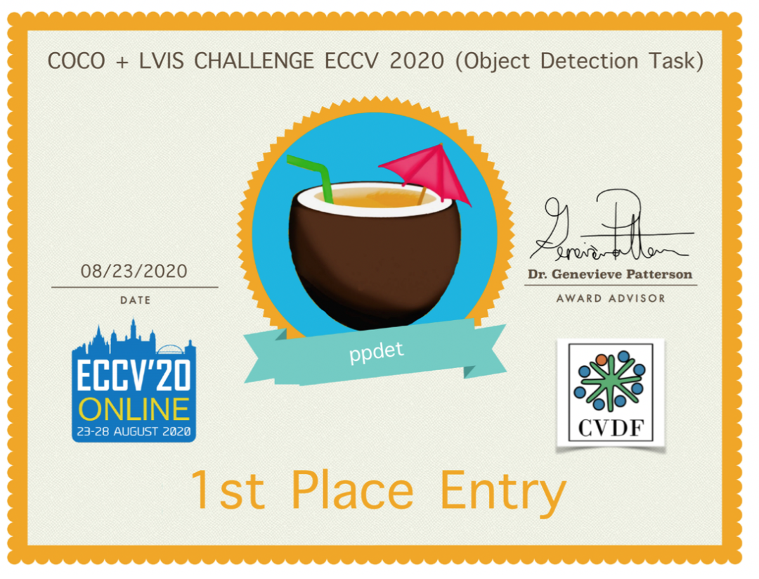 近日,百度视觉团队借助PaddleDetection在计算机视觉顶会ECCV 2020 (European Conference on Computer Vision,欧洲计算机视觉国际会议)比赛中,斩获两个赛道冠军,分别是Tiny Object Detection和目标检测领域最权威的比赛COCO。