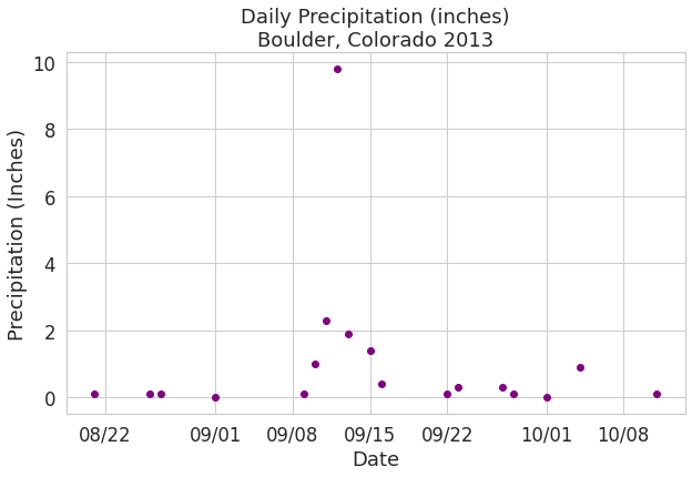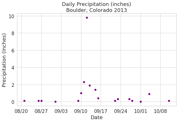 title="Daily Precipitation (inches)\nBoulder, Colorado 2013")