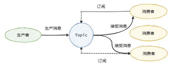 为了解决一条消息能被多个消费者消费的问题,发布/订阅模型就来了。该模型是将消息发往一个Topic即主题中,所有订阅了这个 Topic 的订阅者都能消费这条消息。