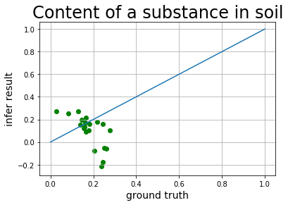 将结果进行可视化,横轴为实际含量,纵轴为根据光谱预测的含量,大部分得结果还是比较接近得。至此,我们获得了通过光谱看到土壤中某物质含量的火眼金睛啦!高光谱反演的用途还有许多,快快在AI Studio中fork项目展示出你的创意吧: