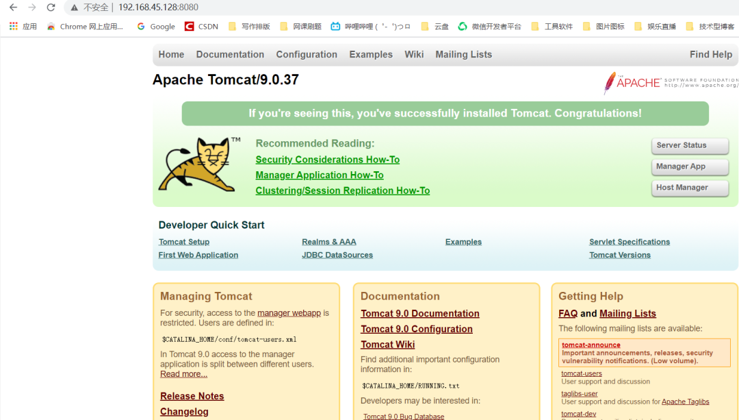 这里我们以Tomcat为例子,我们看看如何在外部通过Docker端口映射来访问宿主主机里面的Tomca。
