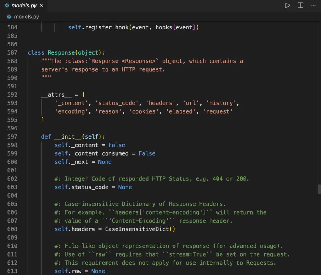 补充知识点:响应体${resp}是一个类对象,源码可在requests/models/Response查看,可以查看找出该类的所有属性,第6行打印结果: