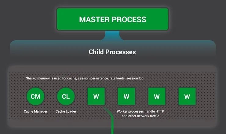 其中,Master是管理进程,它长期处于Sleep状态,并不参与请求的处理,因此几乎不消耗服务器的IT资源。另外,只有在开启HTTP缓存后,Cache Loader和Cache Manager进程才存在,其中,当Nginx启动时加载完磁盘上的缓存文件后,Cache Loader进程也会自动退出。关于这两个 Cache进程,我会在后续介绍Nginx缓存时中再详细说明。