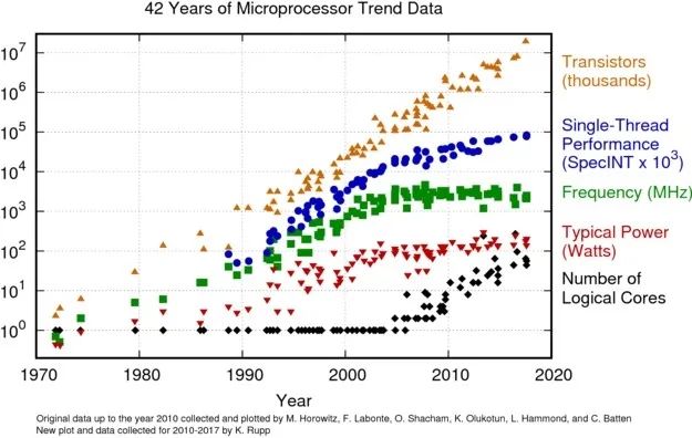 (图片来源:https://www.karlrupp.net/2018/02/42-years-of-microprocessor-trend-data/)