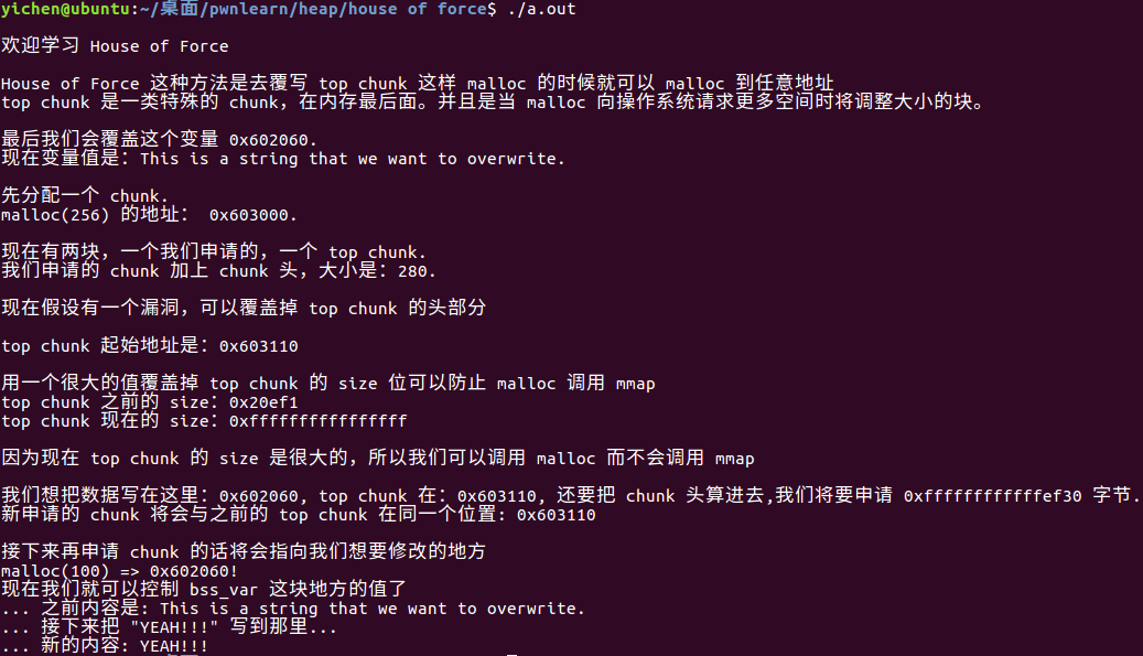 fprintf(stderr, "\n欢迎学习 House of Force\n\n");