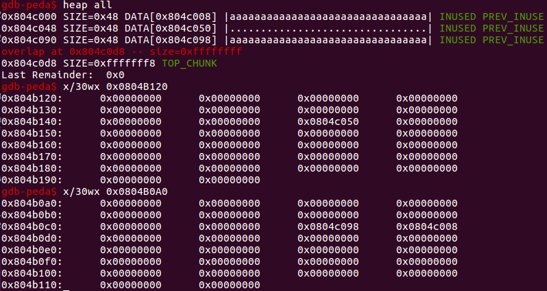 这样 top chunk 就被改到了 0x0804B0A0-0x8 这里,去申请的时候就可以改写