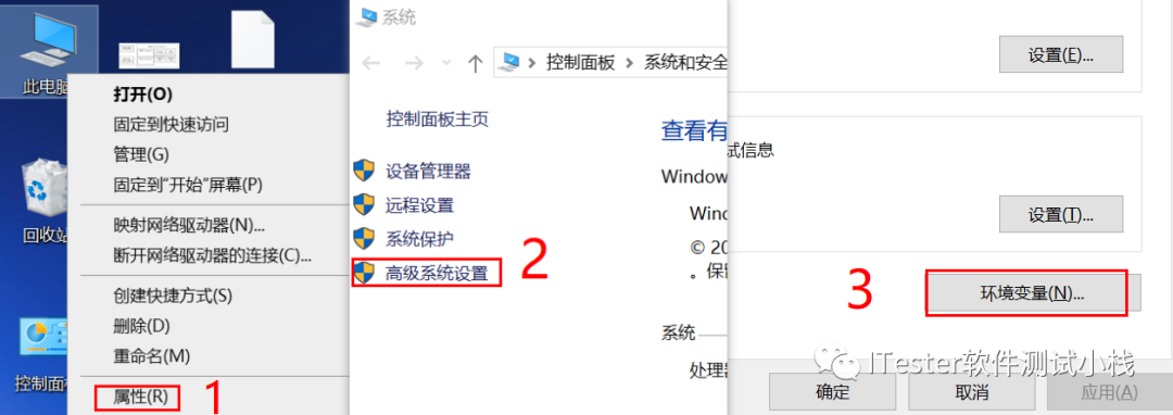 ① JDK安装完成后,配置JDK环境变量。在电脑桌面,"此电脑"右键,依次选择属性-高级系统设置-环境变量。