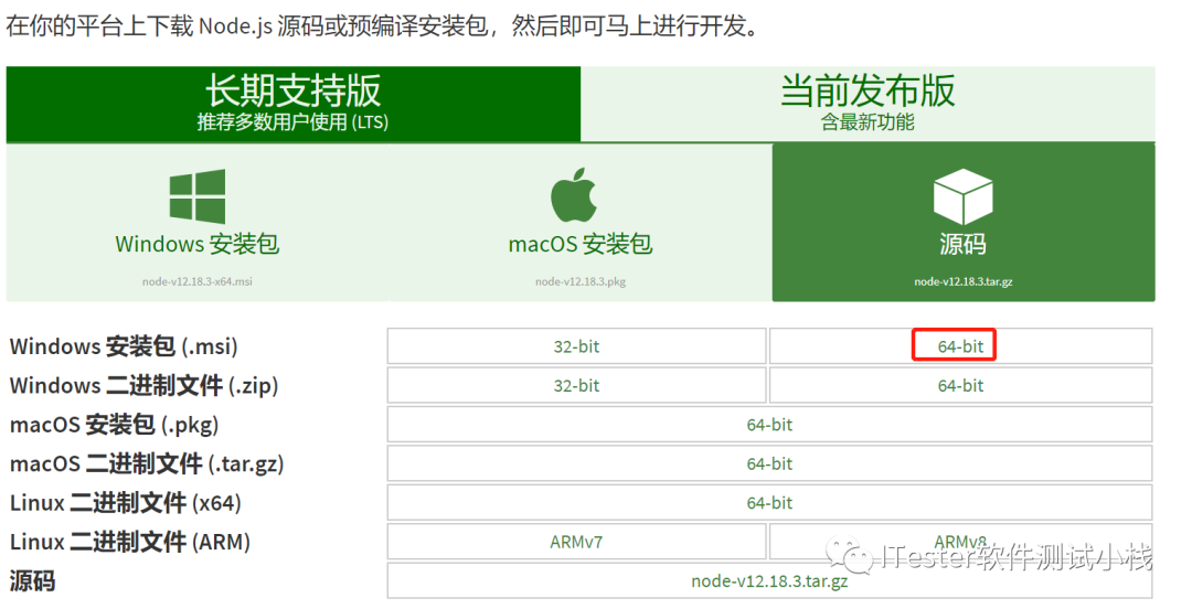 ①进入官网,选择适合自己系统的版本下载即可,node.js下载传送门: