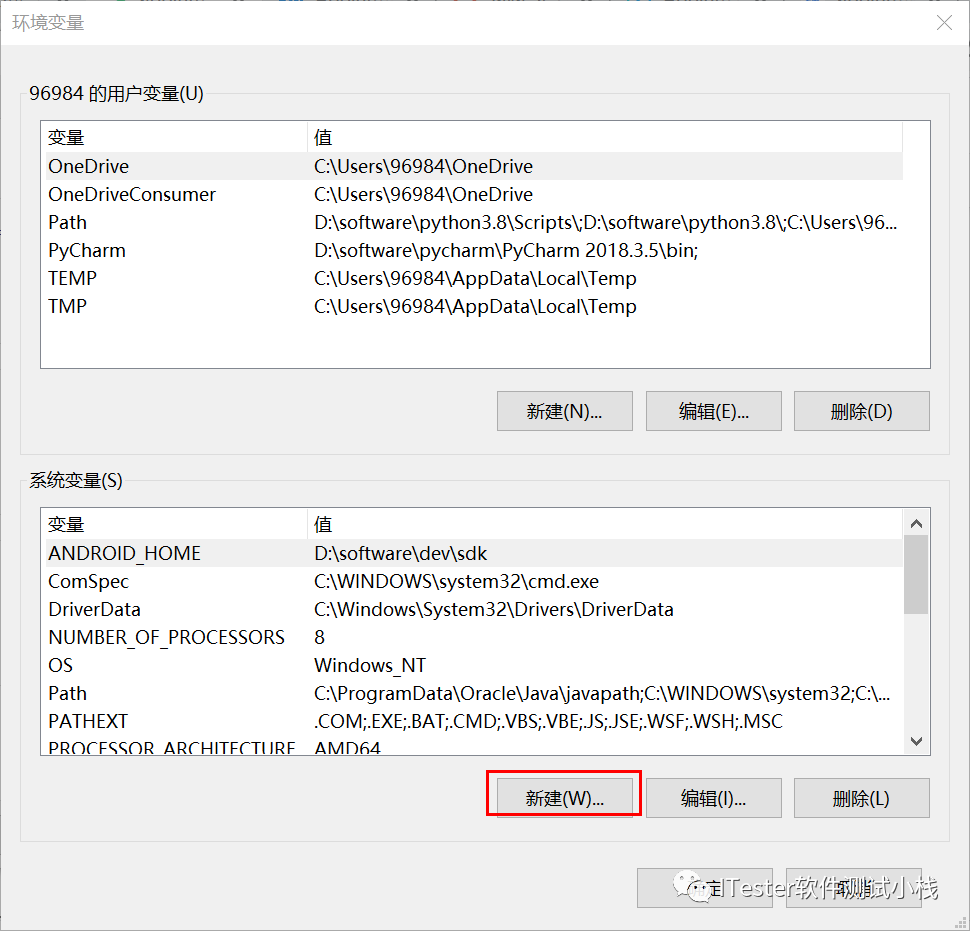 ① SDK环境配置和JDK环境配置相似,点击新建,输入变量名和变量值。
