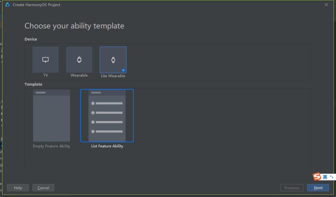这里建议选择第3个LiteWearable,因为其他两个设备项目运行后,都不支持预览,也就是HelloWorld长啥样,你得跑起来才能看到。但是LiteWearable又仅支持JS,所以你还是别预览了,老老实实用虚拟机看吧