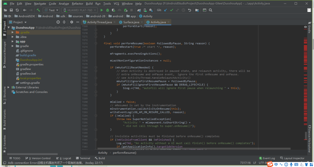 下面分别是DevEco Studio / AndroidStudio / IDEA(我都设置成了深色主题)
