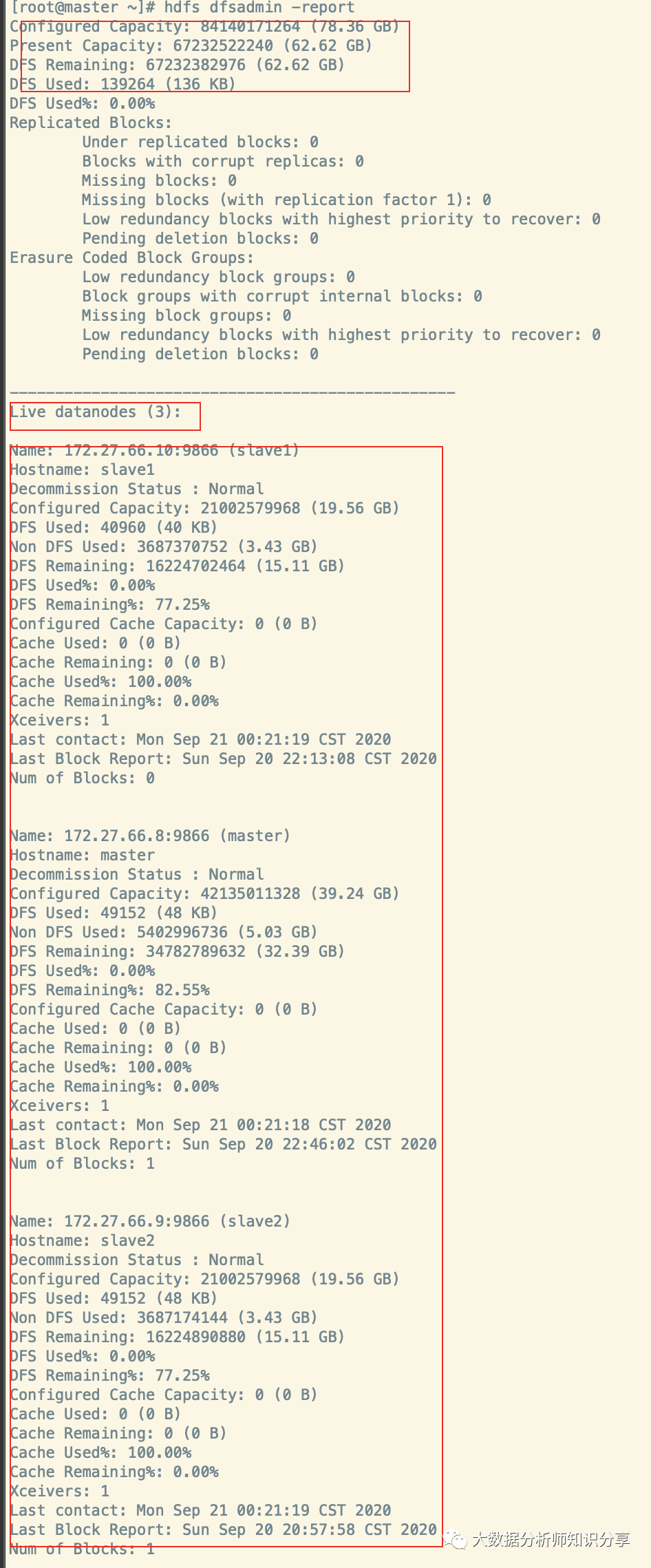 Hadoop主要有HDFS(分布式文件存储系统)、Yarn(集群资源管理与调度)和MapReduce(分布式计算框架)组成。Hadoop集群中分为主机(master)和从机(slave),本文配置一台阿里云服务器为主机和从机。其余两台为从机。HDFS(分布式文件存储系统)在主机上称为Namenode节点,在从机上称为Datanode节点。Namenode维护HDFS的文件系统树以及文件树中所有的文件和文件夹的元数据。可以理解为win系统中文件夹属性中的那些信息,Datanode是存储和检索数据的地方。可以理解为win系统中文件夹中实际数据。