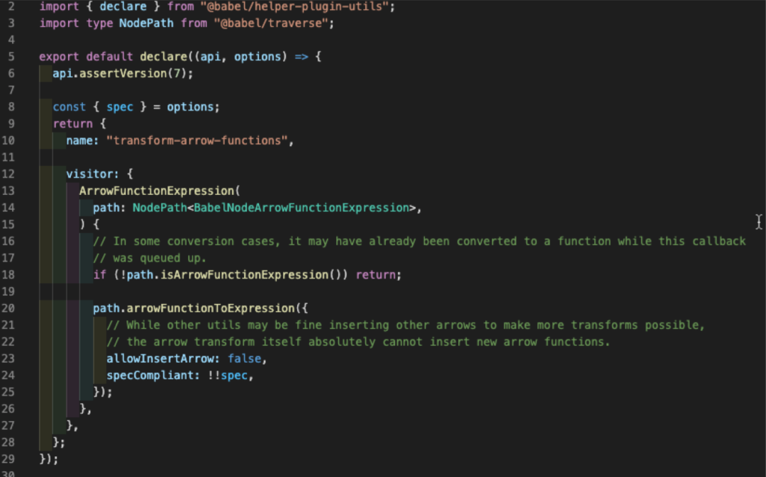 箭头函数转换成普通函数的插件:@babel/plugin-transform-arrow-functions [3]源码: