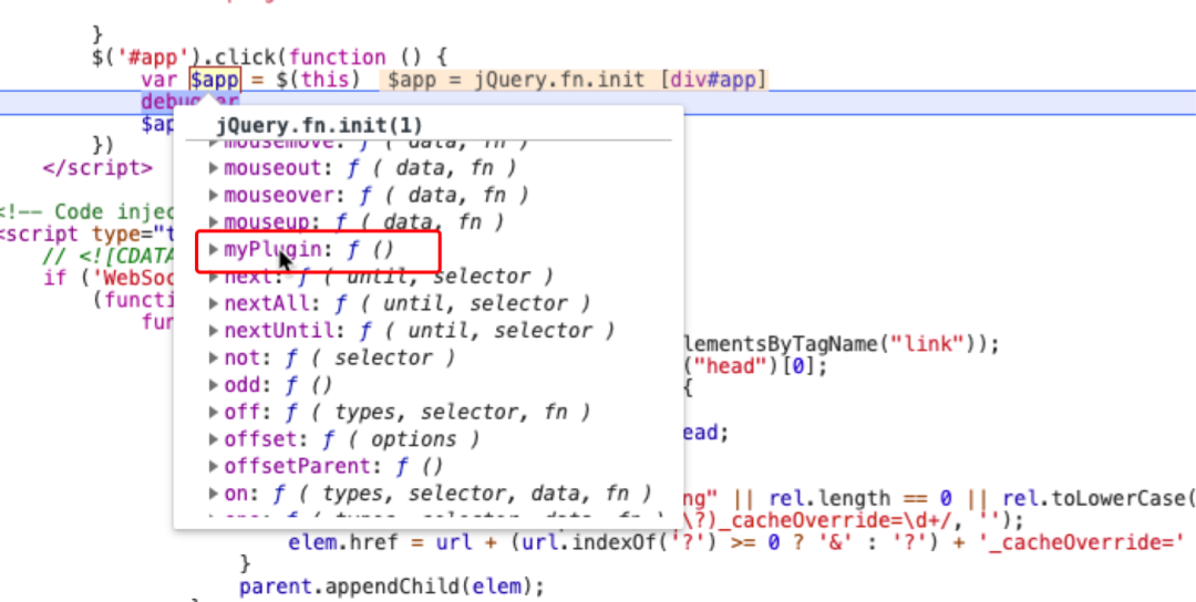 $app便可以在原型链上查找到myPlugin: