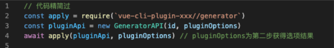 1)require(vue-cli-plugin-xxx/generator),获得插件的执行函数;