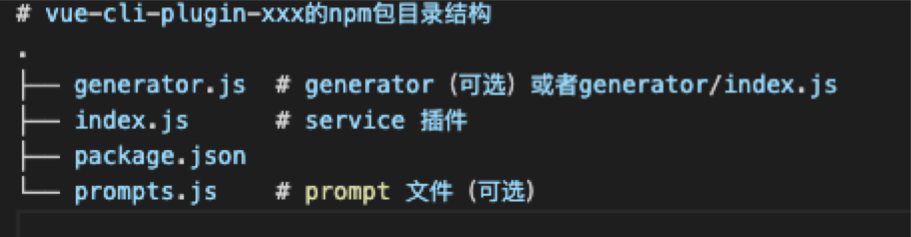 插件必须是vue-cli-plugin-命名的npm包,并且目录结构也是要严格遵循文件命名来定义。