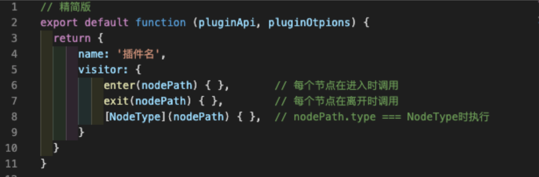 插件是一个函数,返回值是一个包含visitor的对象。插件定义的部分概念说明: