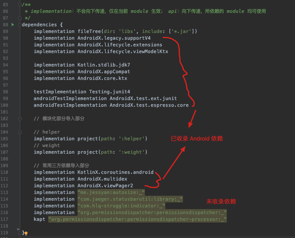 /*<dep>*/ <--- 必须存在// gradlePluginimplementation "com.android.tools.build:gradle:4.0.1"// permissionsDispatcher:Android 6.0 动态权限管理implementation "org.permissionsdispatcher:permissionsdispatcher:4.7.0"/*</dep>*/ <--- 必须存在