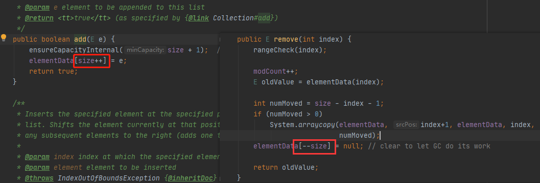 接着查看了ArrayList调用size()方法的源码是直接返回一个int 型的 size变量的,而这个size变量是每次新增和删除都会改变这个size的值