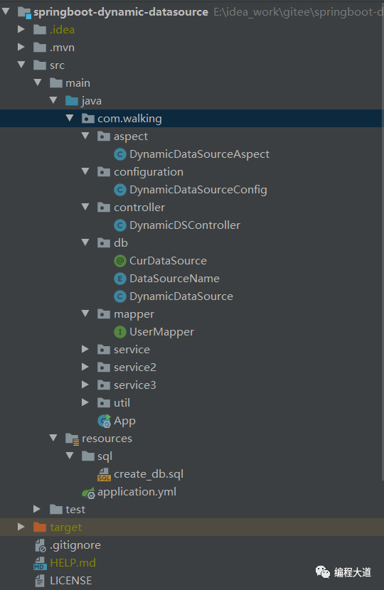 我们需要有一台联网的电脑(用于maven自动下载依赖),并且电脑安装JDK 8、IDEA、MySQL数据库、maven,首先创建一个springboot项目(SSM也行)。springboot版本和SSM版本的代码都已经放到码云托管。感兴趣的可以去下载https://gitee.com/itwalking/springboot-dynamic-datasource,https://gitee.com/itwalking/ssm-dynamic-datasource