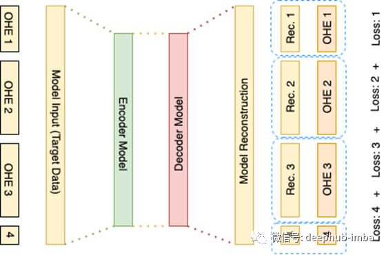 所以现在我们已经讨论了自动编码器的结构和一个热编码过程,我们终于可以讨论与使用一个热编码在自动编码器相关的问题,以及如何解决这个问题。当一个自动编码器比较重建到原始输入数据,必须有一些估值之间的距离提出重建和真实的价值。通常,在输出值被认为互不相干的情况下,将使用交叉熵损失或MSE损失。但在我们的一个热编码的情况下,有几个问题,使系统更复杂: