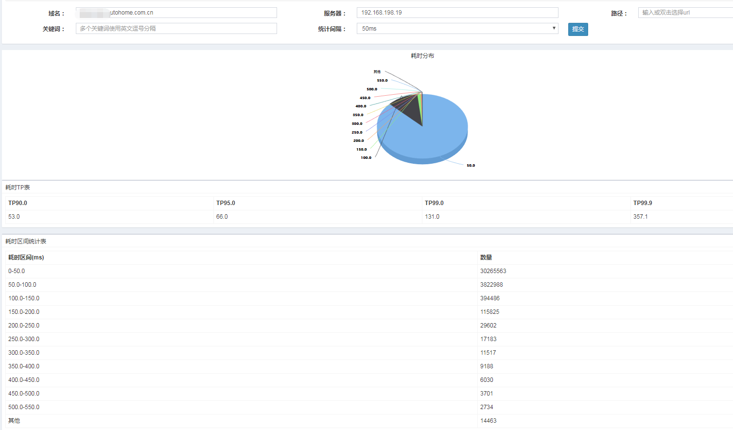 用于分析特定域名或url的性能。包括tp统计,耗时区间分布统计。