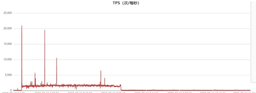 于是业务梳理突发流量对应接口,梳理出来后下掉了该接口,QPS监控曲线如下: