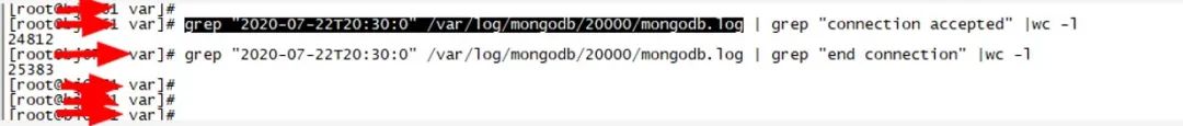 分析对应代理mongos日志,发现如下现象:抖动时间点mongos.log日志有大量的建链接和断链接的过程,如下图所示: