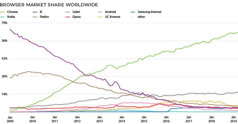 上世纪90年代末,网景浏览器仅用了几个月的时间,就从互联网之王变成了平庸之辈。这个原因只是因为微软捆绑安装Internet Explorer而已,这看起来似乎很不公平,但大多数行业观察人士认为,未来浏览器将是免费且无处不在的,你很难完全依靠一个浏览器来承载整个公司的业务。
