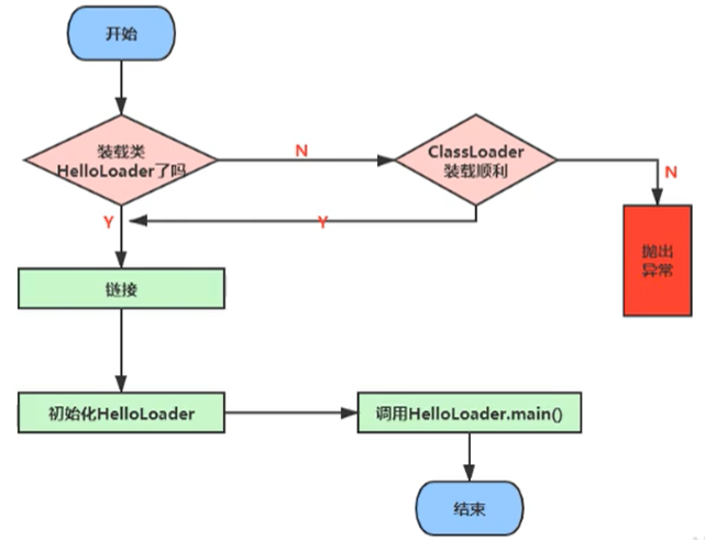 - 完整的流程图如下所示: *加载 --> 链接(验证 --> 准备 --> 解析) --> 初始化
