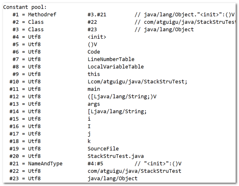 - 加载的类信息存放于一块称为方法区的内存空间。除了类的信息外,方法区中还会存放运行时常量池信息,可能还包括字符串字面量和数字常量(这部分常量信息是Class文件中常量池部分的内存映射)